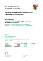 • Begründung mit Umweltbericht und Anlagen (Brandschutzkonzept, Einhaltung der Gewässer-schutzanforderungen bei Errichtung und Betrieb der Batteriespeicheranlagen, Schallgutachten)