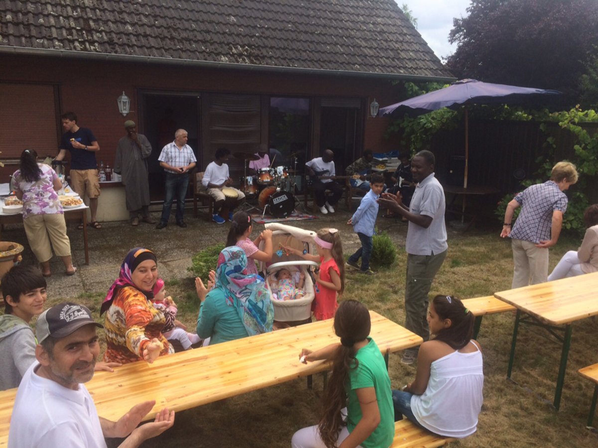 Mehr als 50 Personen feierten mit einem fantastischen Büffet zusammengestellt aus regionalen und internationalen Spezialitäten aus verschiedenen Ländern und Regionen zusammengestellt von den Gastgebern und den Gästen, vielen Gesprächen, Musik von der sudanesischen Gruppe S.P. zu der ausgiebig getanzt wurde und einem gemeinsamen Gebet mit dem Imam Mustafa Amca aus Wathlingen das Ende der Fastenzeit.